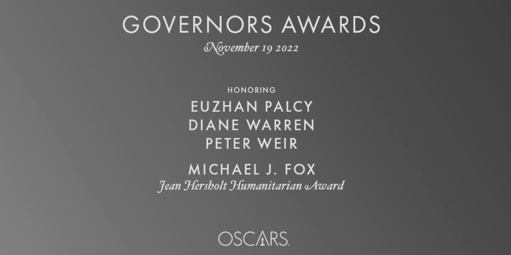 A recent article from the Hollywood Reporter announced that Michael J. Fox would receive the Jean Hersholt Humanitarian Award, and Diane Warren, Peter Weir, and Euzhan Palcy would all receive Honorary Oscars at the Academy of Motion Pictures Arts and Sciences’ 13th Governors Awards on November 19.