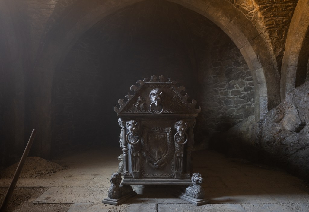 Craig Lathrop: And we made all the curtains and all the bedding and all the kind of stuff that you would expect. And what other details are in there? There’s some more details on the fireplace. I don’t know if you even see the ceiling. The ceiling is a coffered ceiling with There’s a lot of painting on it, but it was dark. Then, there’s the crypt. We built the crypt, of course. And so there are other coffins in there, but this is the main sarcophagus.